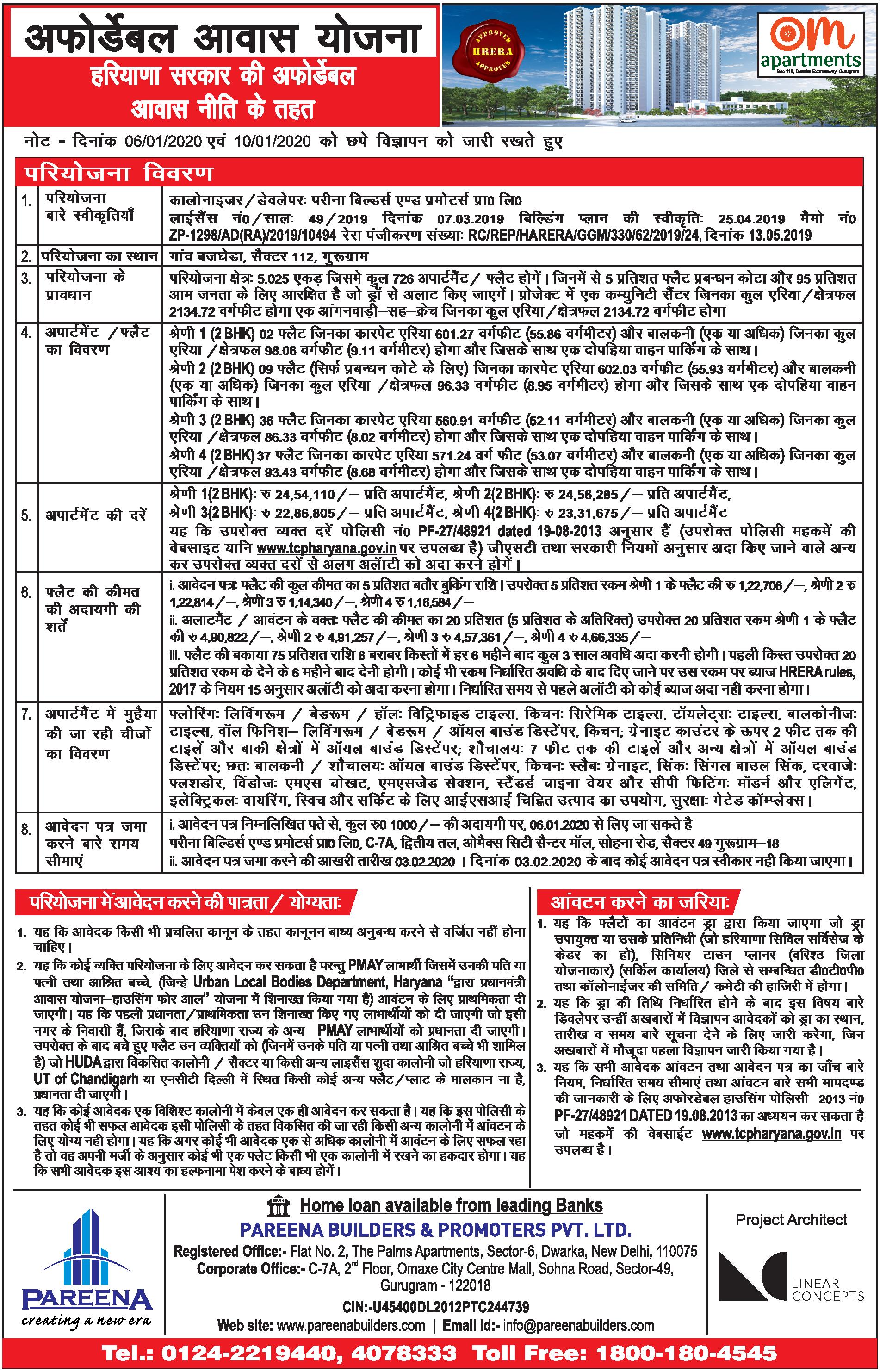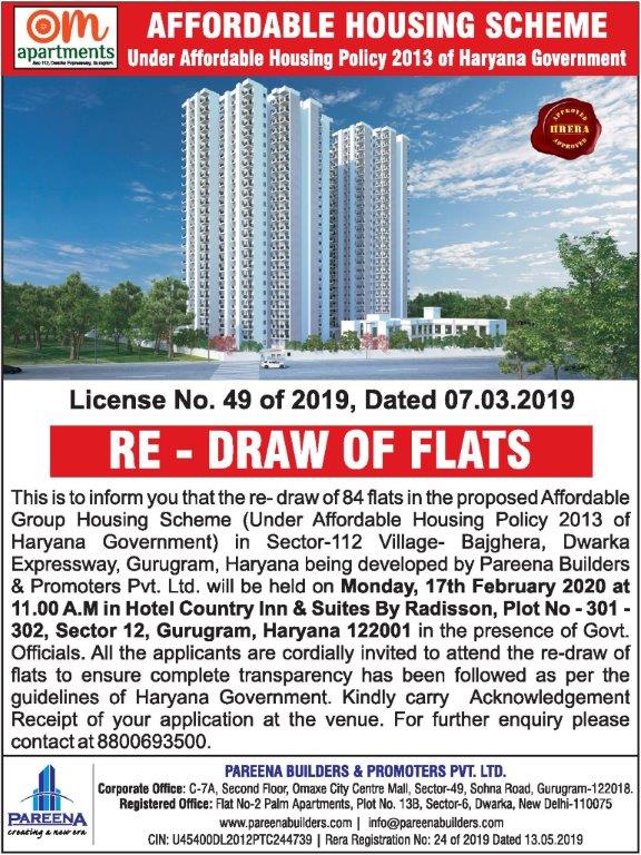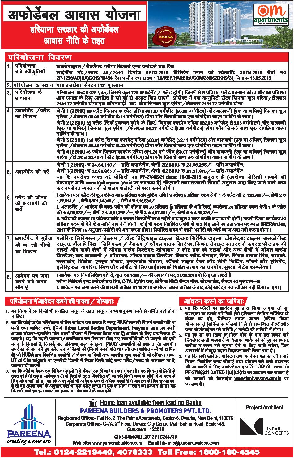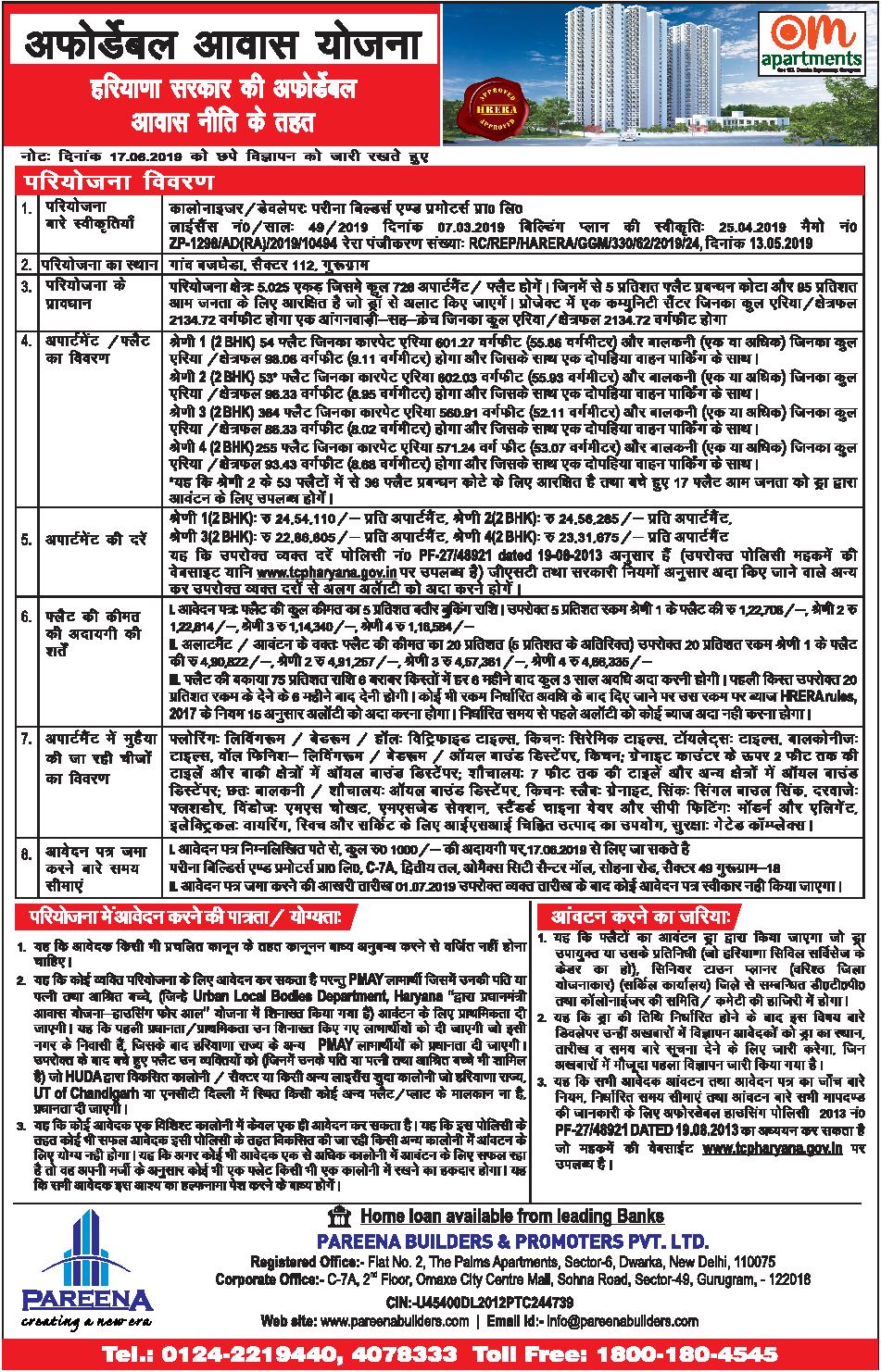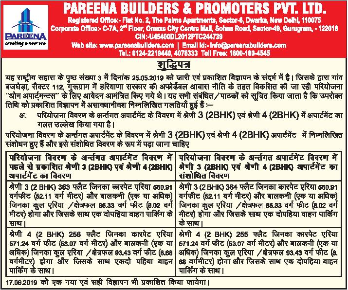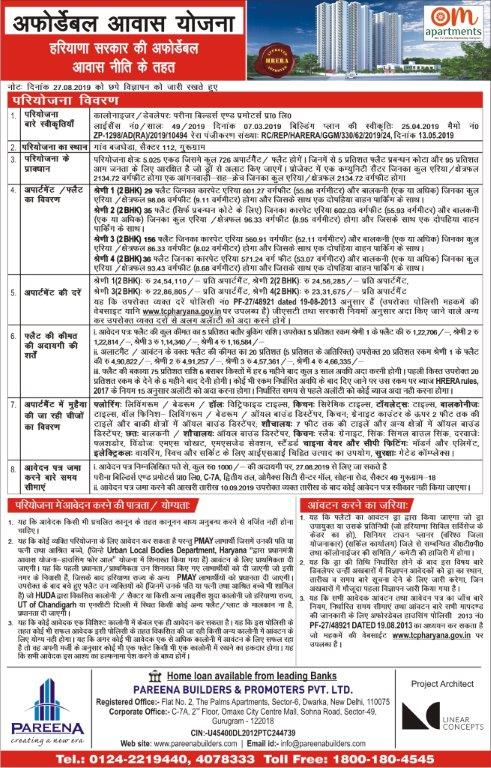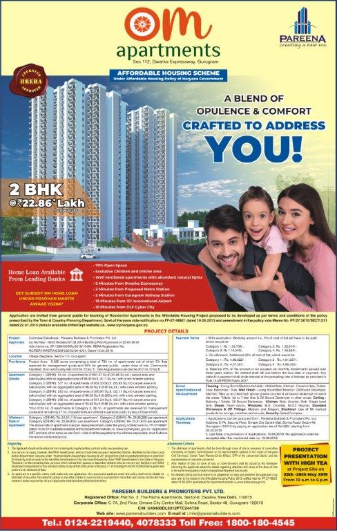 Disclaimer: - Our Company is not accepting any cash or any other consideration in connection with booking or allotment of flat in Om Apartments project and also we have not authorized any other person in this behalf, Hence, if any person gives or accepts cash for booking or allotment of flat in this project our Company shall not be held liable.