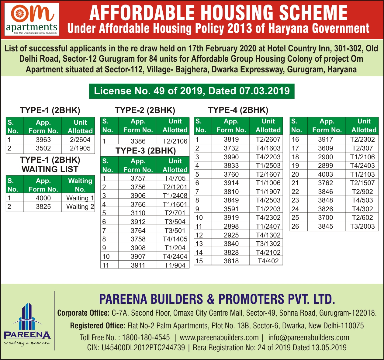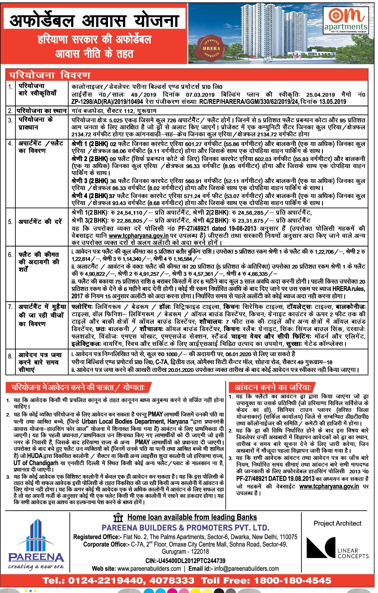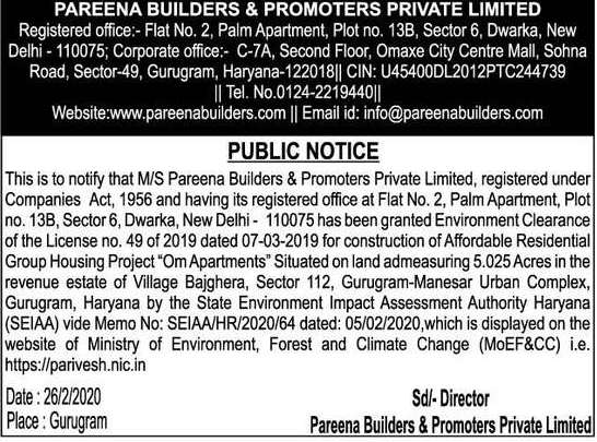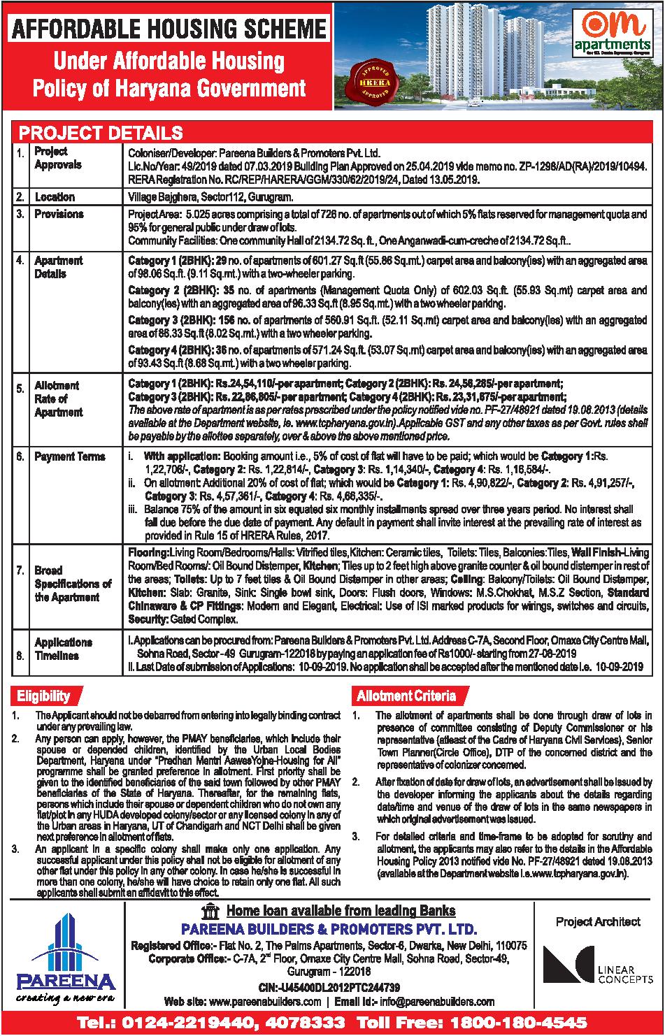 Disclaimer: - Our Company is not accepting any cash or any other consideration in connection with booking or allotment of flat in Om Apartments project and also we have not authorized any other person in this behalf, Hence, if any person gives or accepts cash for booking or allotment of flat in this project our Company shall not be held liable.