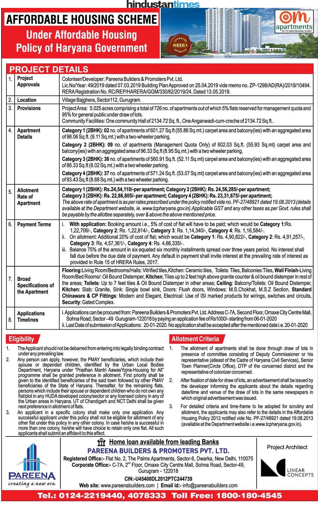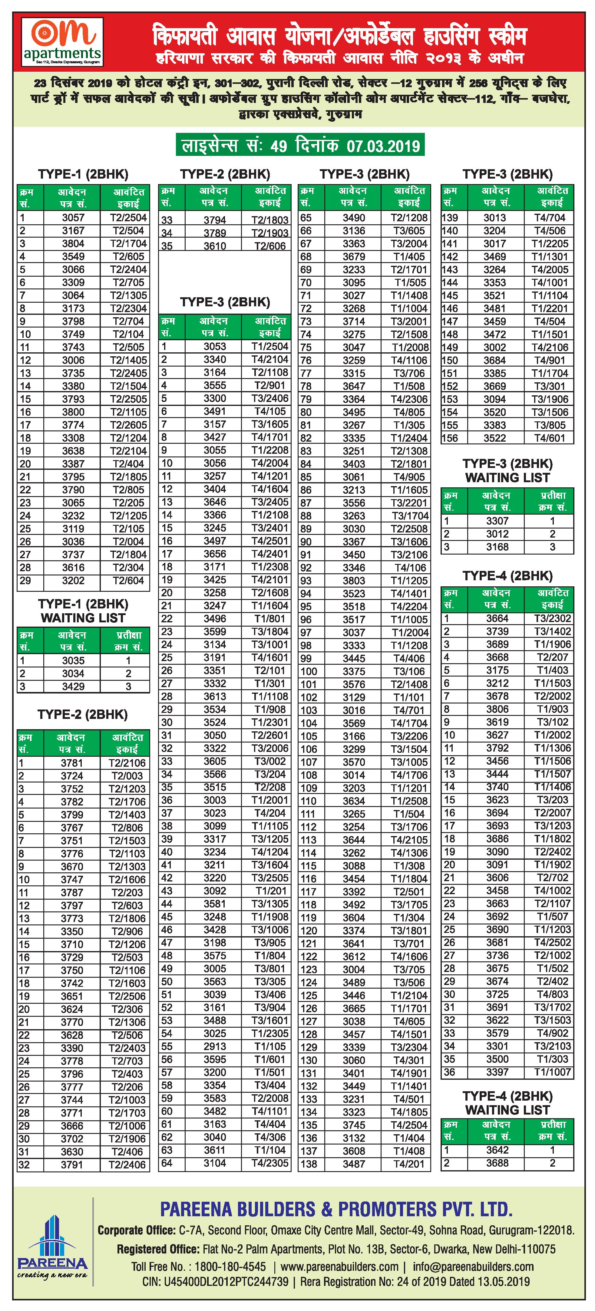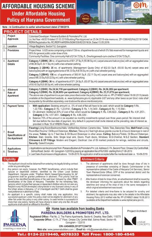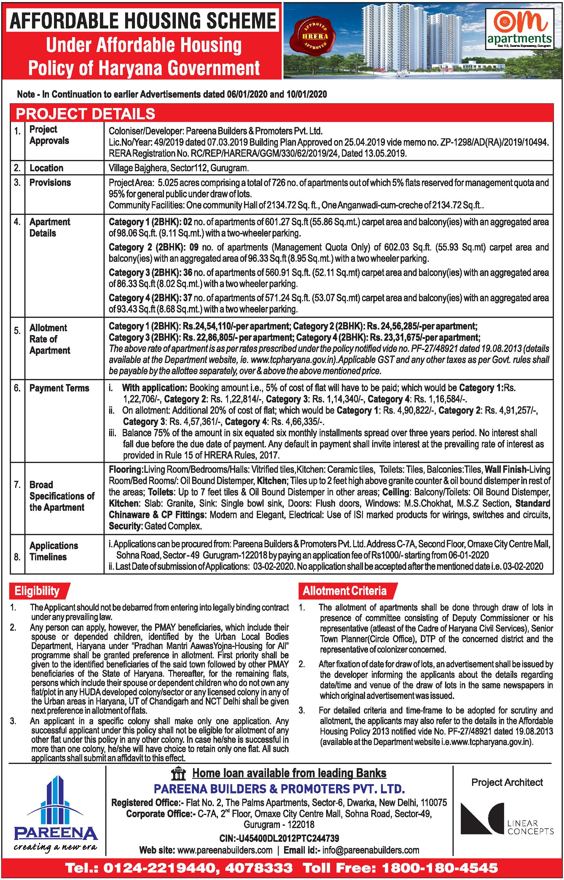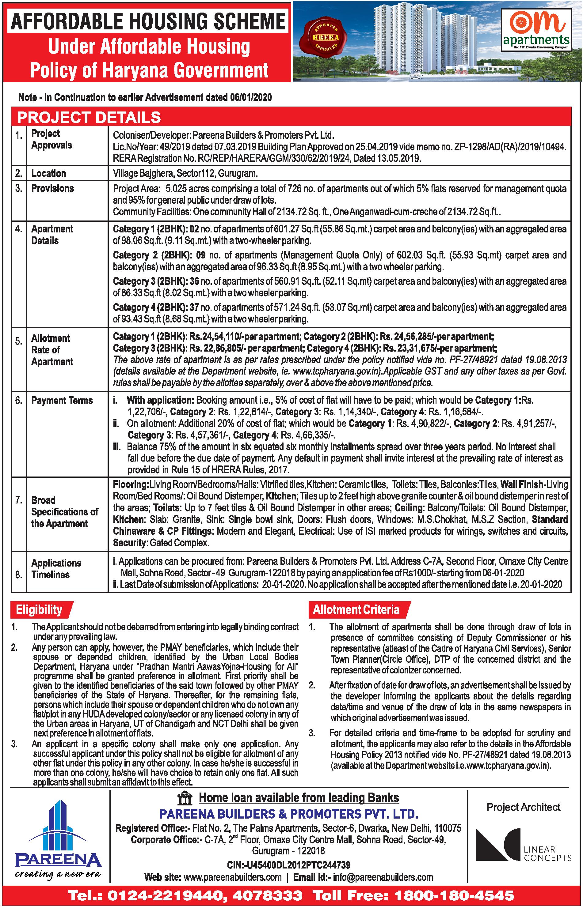 Disclaimer: - Our Company is not accepting any cash or any other consideration in connection with booking or allotment of flat in Om Apartments project and also we have not authorized any other person in this behalf, Hence, if any person gives or accepts cash for booking or allotment of flat in this project our Company shall not be held liable.